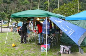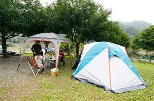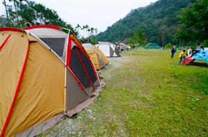 這塊基地的旁邊,是一座小山,蒼翠茂密的林地,是營地的天然屏障。山上的泉水沿著小瀑布,宣洩而下,提供營地最自然的冷氣與空氣的調節,方正寬闊的營區,可以一次容納200人同時露營。每個獨立的露營區塊,寬廣偌大綠草地,階梯式的營位規劃讓您享有不被打擾隱私。全天候提供熱水的衛浴,完善的露營設施,讓您來到於此,儘管放鬆渡假,緩慢體會山林之美。